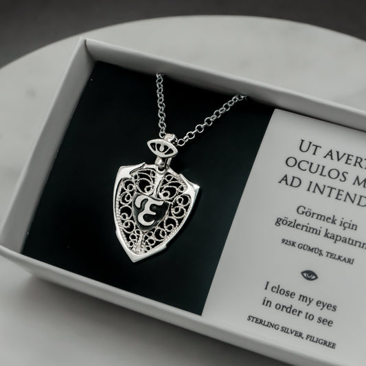 Eye & Personalized Monogram Filigree Shield Necklace in Silver