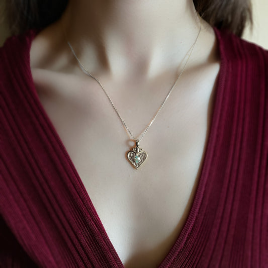 Alice Heart Necklace – London Blue Topaz & Filigree in Silver
