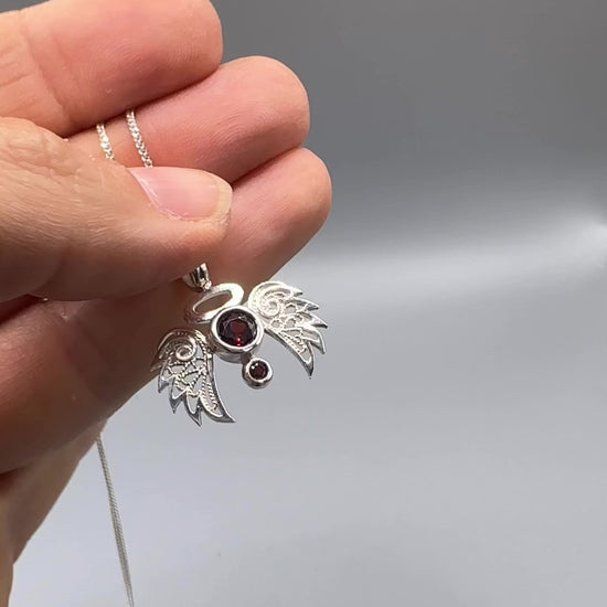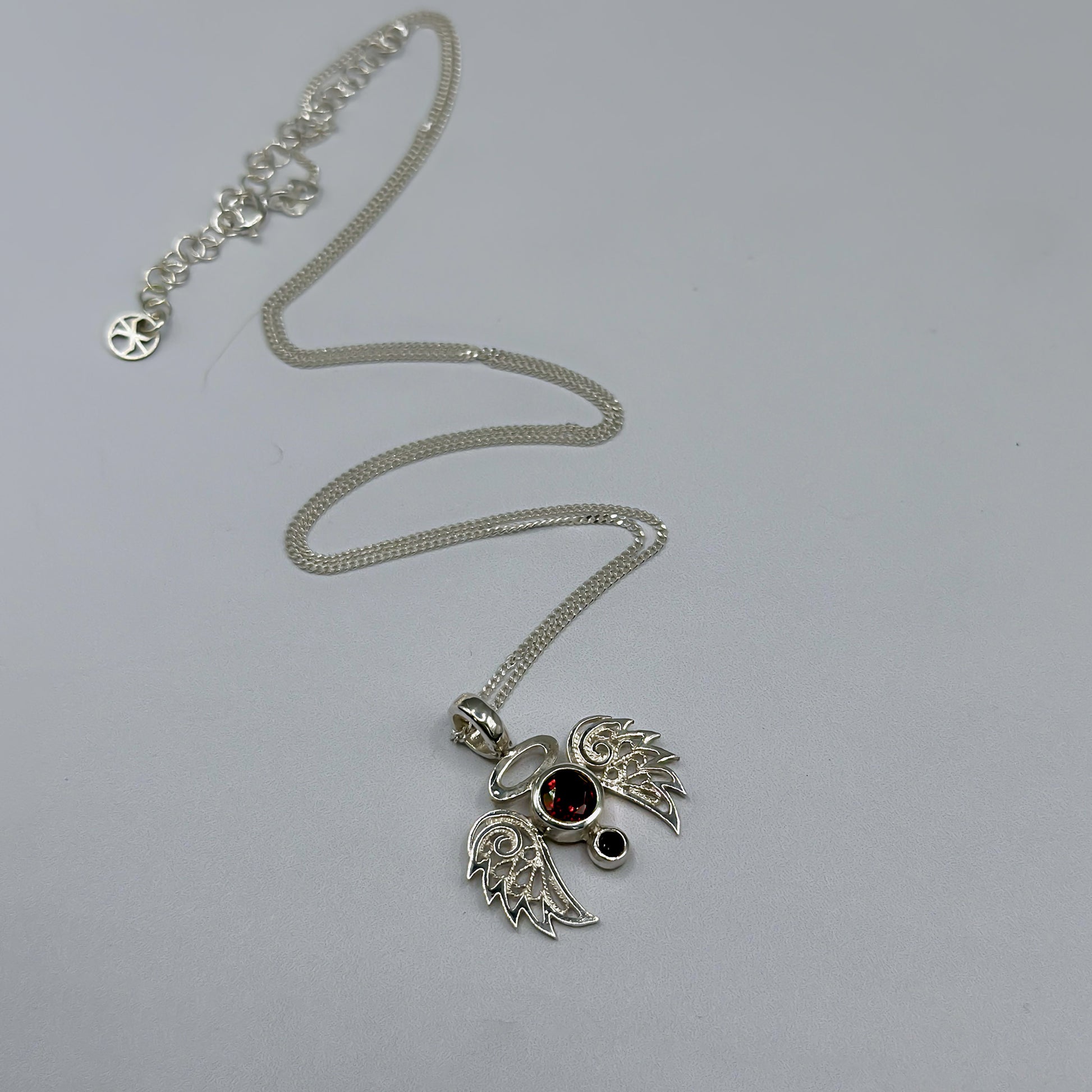 Angelo Necklace - Garnet & Filigree in Silver